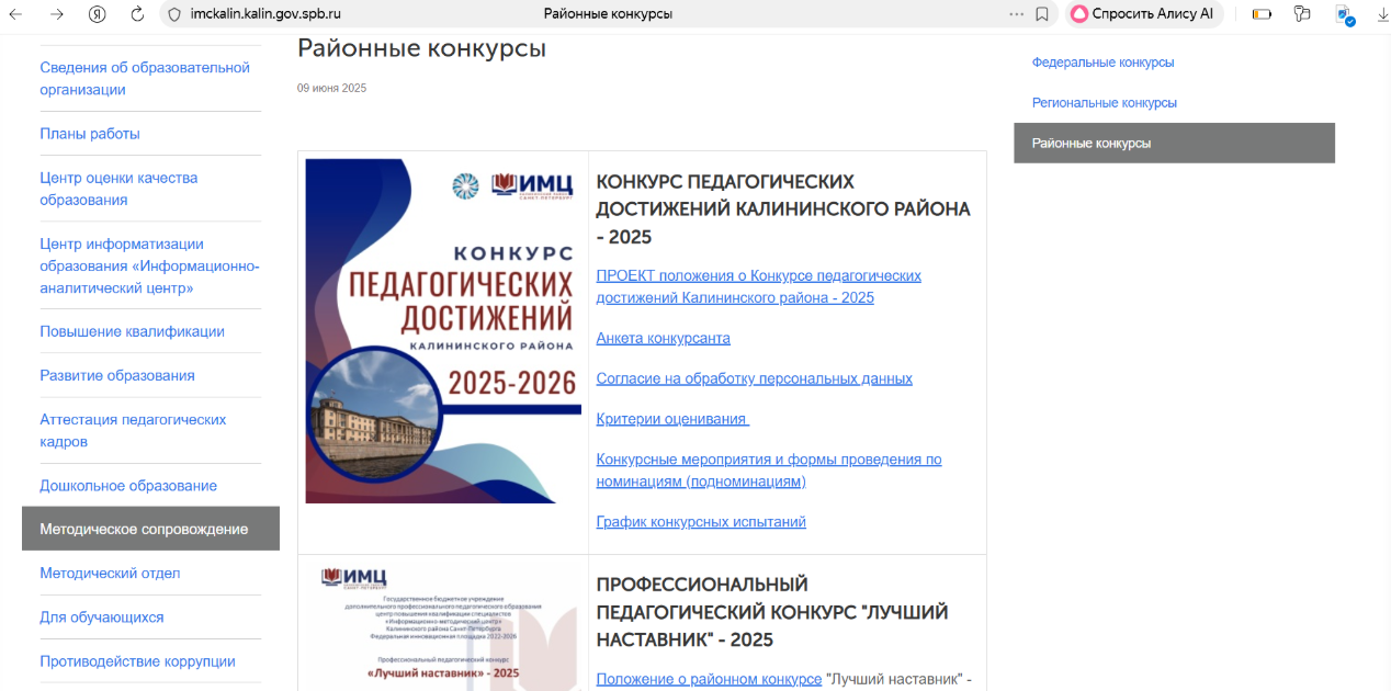 Полезная информация для участников традиционного конкурса педагогических достижений Калининского района Санкт-Петербурга в 2025-2026 учебном году